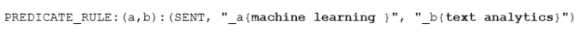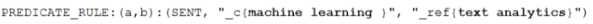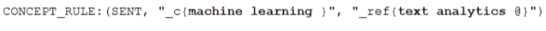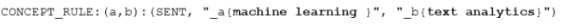 Which concept rule must be used for generating factual extraction within a sentence containing machine learning and text analytics? A) B) C) D)