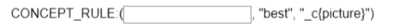 Complete the concept rule by adding the Boolean Operator that should be used to find concepts where the term "best" appears within five tokens of the term "picture" Enter your answer in the field above.