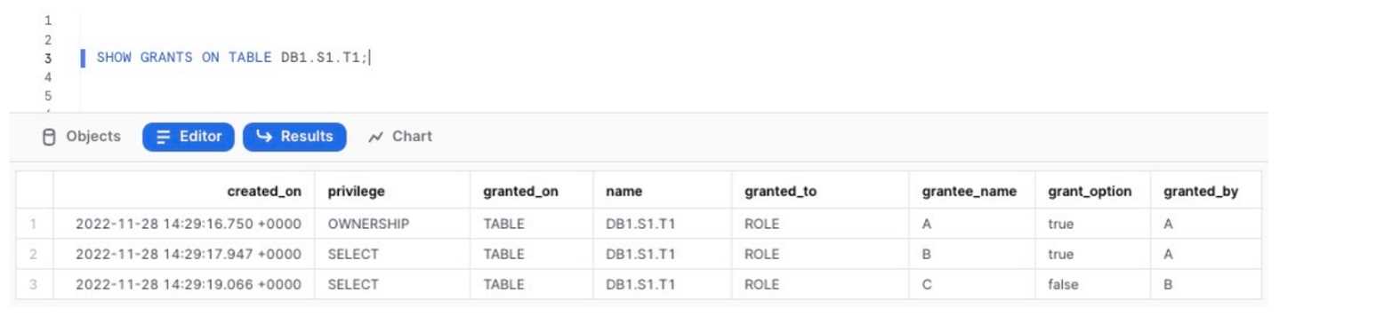Dropping role A does not affect the SELECT privileges granted to roles B and C on the table DB1.S1.T1.