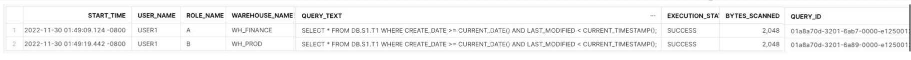 day. Option C is irrelevant, as the virtual warehouse used to execute the query does not affect the