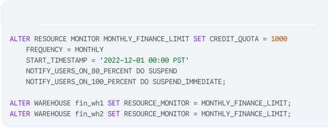 ALTER RESOURCE MONITOR MONTHLY_FINANCE_LIMIT RESET;