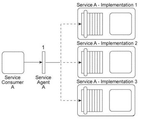 Service Consumer A sends a message to Service A . There are currently three duplicate implementations of Service A (Implementation 1, Implementation 2, Implementation 3). The message sent by Service Consumer A is intercepted by Service Agent A (1), which determines at runtime which implementation of Service A to forward the message to. All three implementations of Service A reside on the same physical server. You are told that despite the fact that duplicate implementations of Service A exist, performance is still poor at times. Also, you are informed that a new service capability will soon need to be added to Service A that will introduce functionality that will require access to a shared database that is used by many other clients and applications in the IT enterprise. This is expected to add further performance demands on Service A . How can this service architecture be changed to improve performance in preparation for the addition of the new service capability?