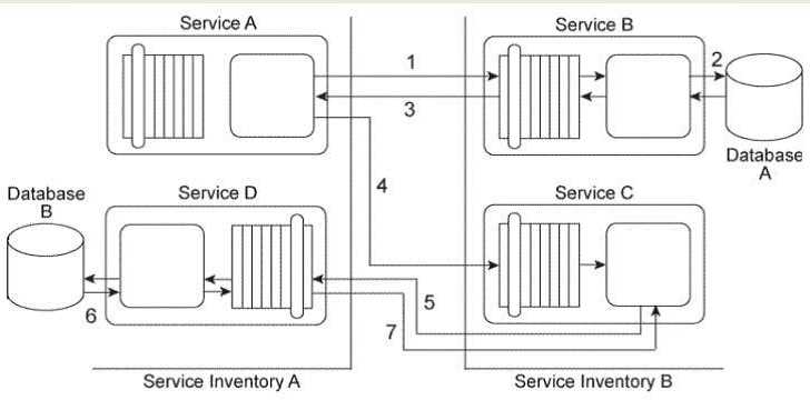 Service Consumer A invokes Service A (1). The logic within Service A is required to retrieve three independent data values from Services B, C, and D and to then return these data values back to Service Consumer A . To accomplish this, Service A begins by sending a request message to Service B (2). After receiving a response message with the first data value from Service B, Service A sends a request message to Service C (3). After it receives a response message with the second data value from Service C, Service A then sends a request message to Service D (4). Upon receiving a response message with the third data value from Service D . Service A finally sends its own response message (containing all three collected data values) back to Service Consumer A . Service Consumer A and Service A reside in Service Inventory A . Service B and Service C reside in Service Inventory B . Service D is a public service that can be openly accessed via the World Wide Web. The service is also available for purchase so that it can be deployed independently within IT enterprises. Due to the rigorous application of the Service Abstraction principle within Service Inventory B, the only information that is made available about Service B and Service C are the published service contracts. For Service D, the service contract plus a Service Level Agreement (SLA) are made available. The SLA indicates that Service D has a planned outage every night from 11 PM to midnight. You are an architect with a project team building services for Service Inventory A . You are told that the owners of Service Inventory A and Service Inventory B are not generally cooperative or communicative. Cross-inventory service composition is tolerated, but not directly supported. As a result, no SLAs for Service B and Service C are available and you have no knowledge about how available these services are. Based on the service contracts you can determine that the services in Service Inventory B use different data models and a different transport protocol than the services in Service Inventory A . Furthermore, recent testing results have shown that the performance of Service D is highly unpredictable due to the heavy amount of concurrent access it receives from service consumers from other organizations. You are also told that there is a concern about how long Service Consumer A will need to remain stateful while waiting for a response from Service A . What steps can be taken to solve these problems?