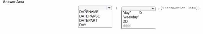 How should you complete the formula? (Use the dropdowns in the Answer Area to select the correct