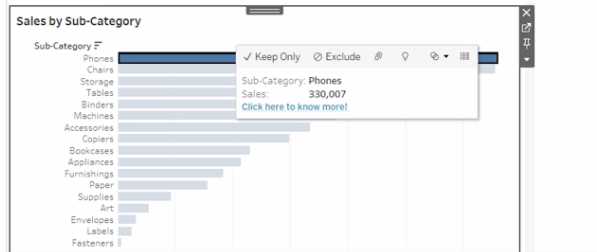 You want to ensure that when you click a bar on a dashboard, a tooltip appears that contains a link