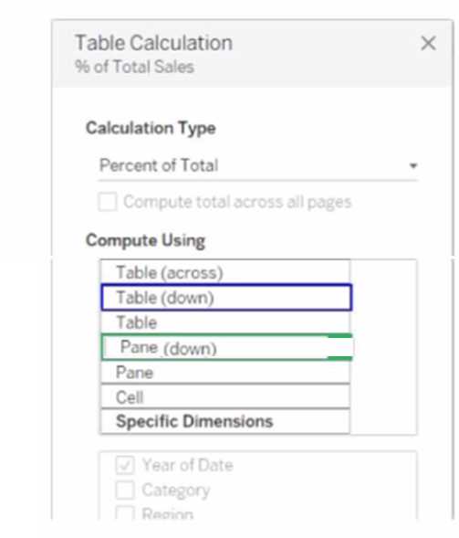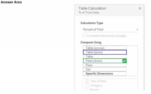 every region annually. Which Compute Using option should you use? (Click the appropriate Option in