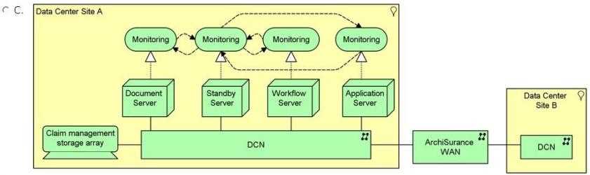 the highly available ArchiSurance wide area network (WAN). Each claim management server is