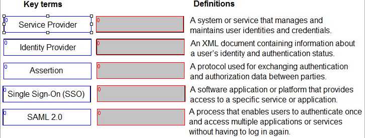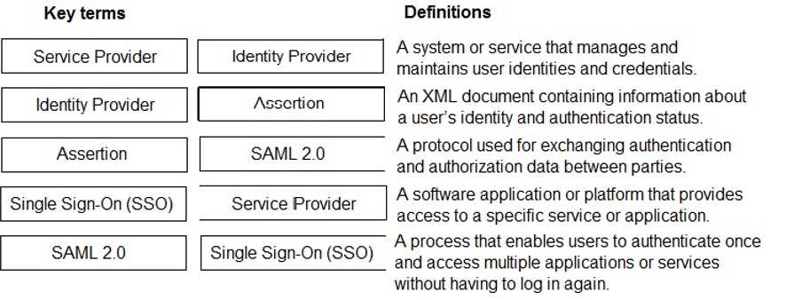 Match the terms related to Workspace ONE Access SAML 2.0 authentication on the left with their